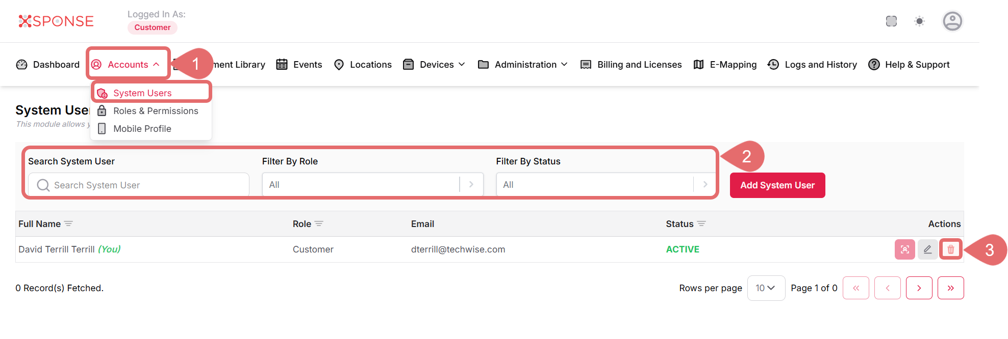 In the Accounts module, you can manage access to the platform by adding, updating, or removing user accounts. Deleting a user is a permanent action typically performed when a person leaves the organization, no longer requires access, or their role has been restructured.
