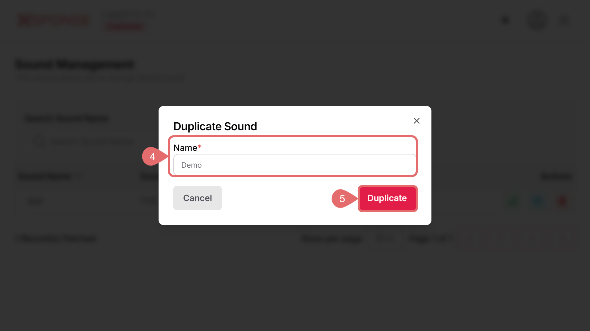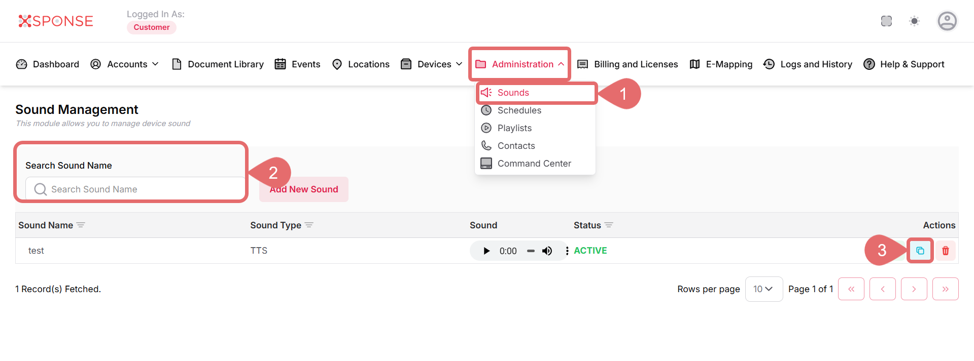 In the Administration module, you can duplicate existing sounds in Xsponse to quickly create a new sound entry using the same settings. This is useful when you want to reuse a sound with slight modifications or assign the same audio to a different configuration.